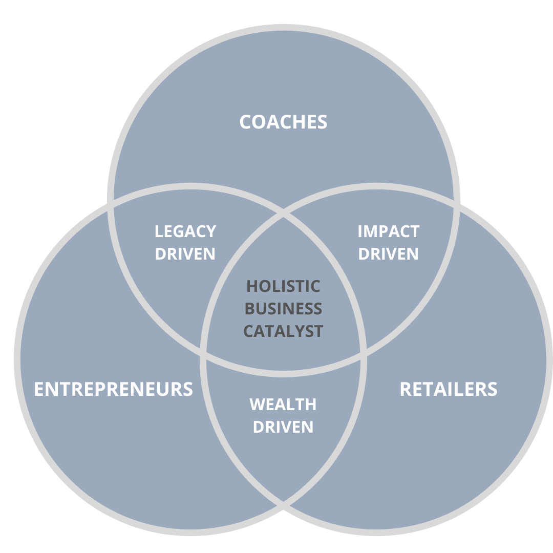 At the intersection of these three worlds, I act as your Holistic Business Catalyst — helping you design a business that is: